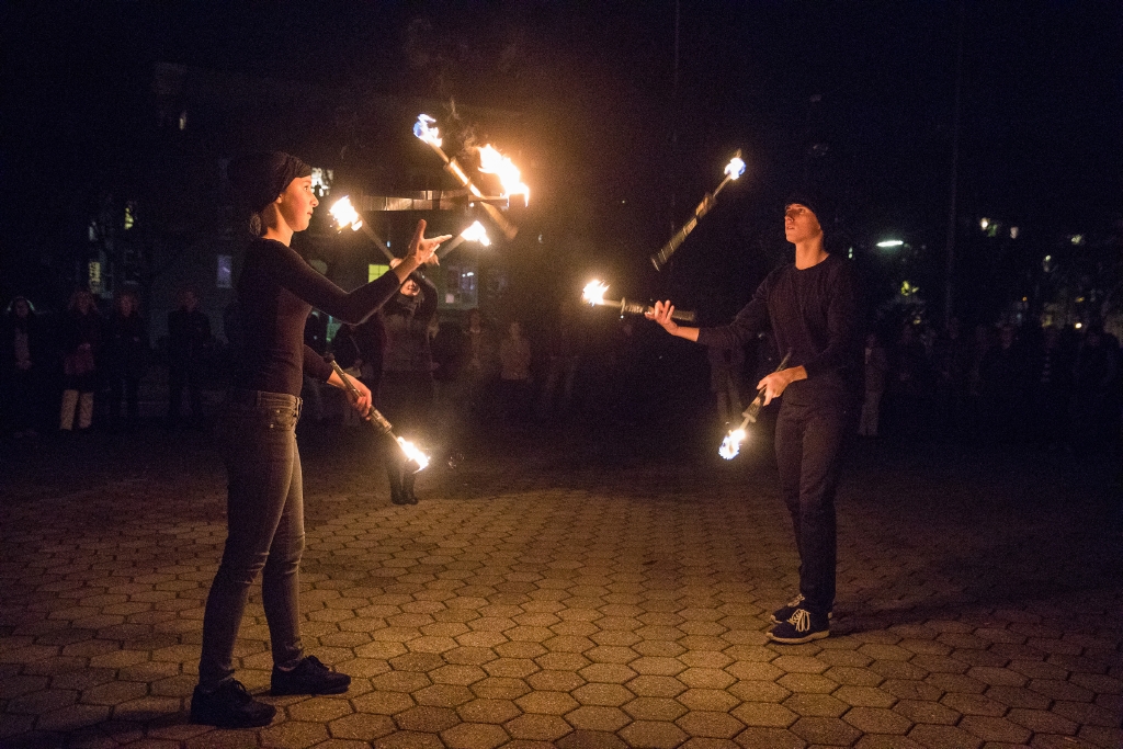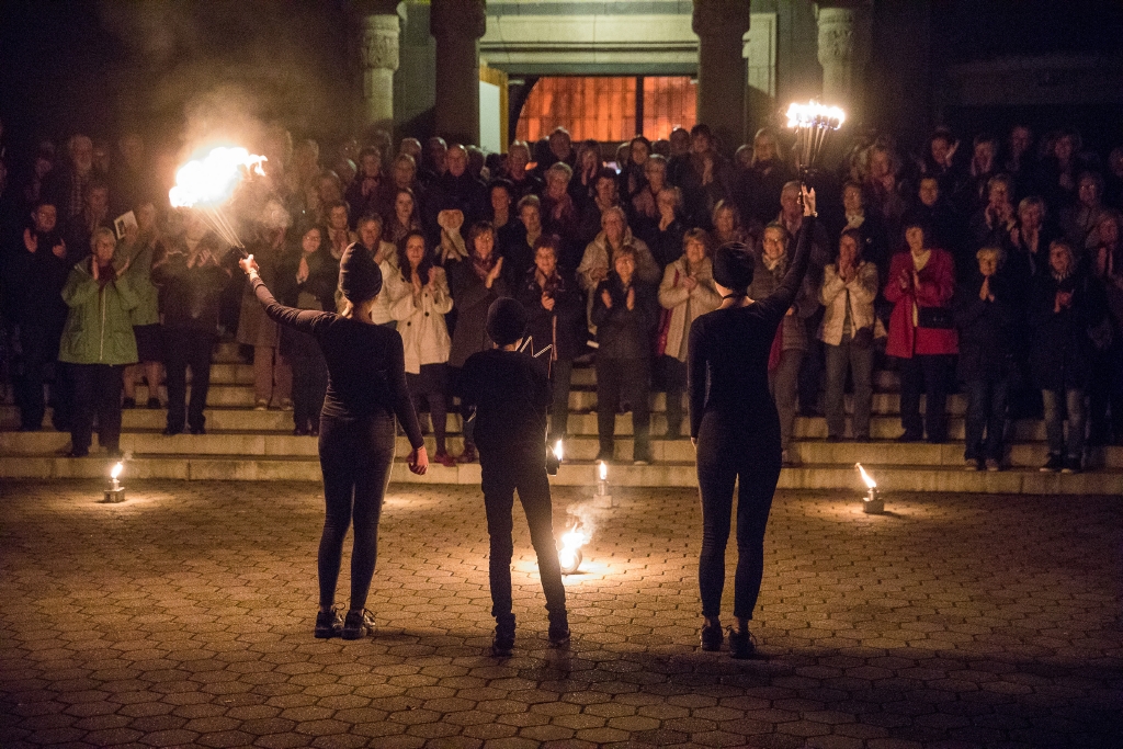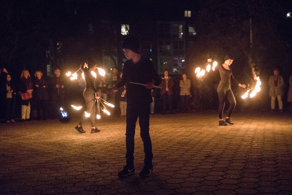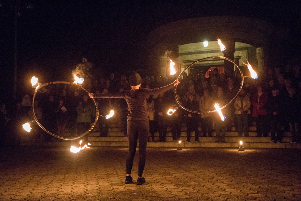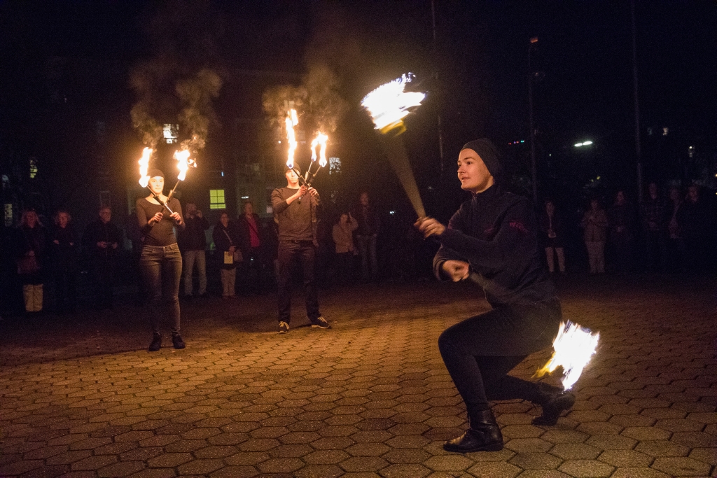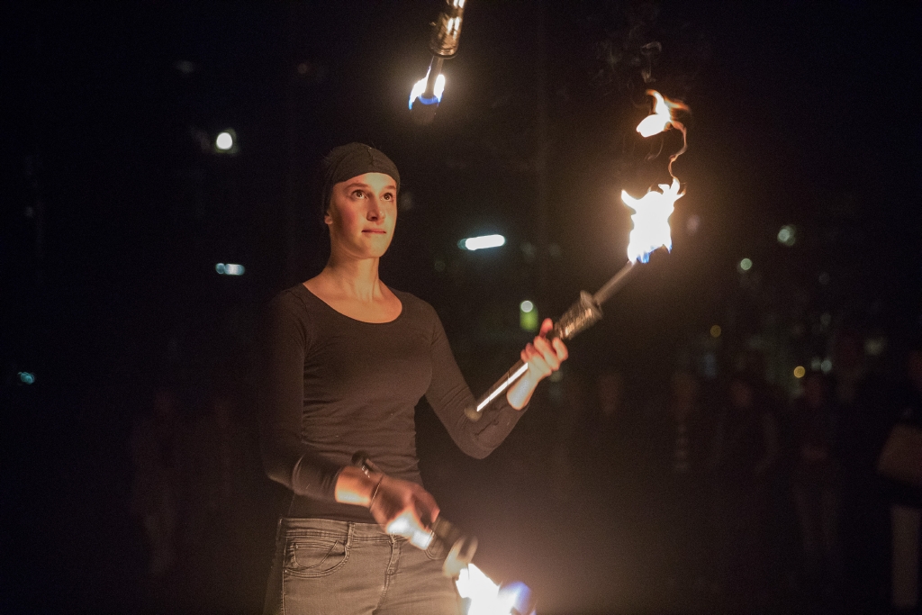 Von einer 21-jährigen Studentin der Wirtschaftspsychologie, über eine Künstlerin, von einem Schulleiter bis zu einem Komponisten, von einer Flüchtlingsberaterin bis zu einer Ordensschwester durften die Anwesenden sich begeistern und anstecken lassen. Abgerundet wurde der Abend vom Zirkus Ratz Fatz mit seiner spektakulären Feuershow und dem Musiker Thomas Krause.